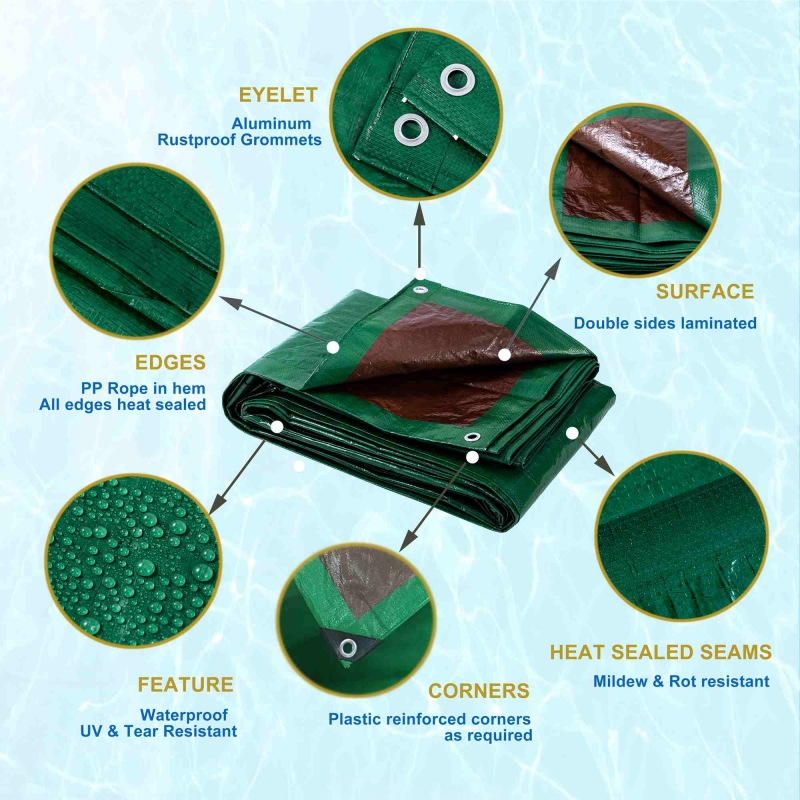 5. Як вимоги клієнтів. Багато поліетиленових брезентів оброблені для стійкостісонце експозиція(1%-3% УФ), зменшуючи деградацію з часом.